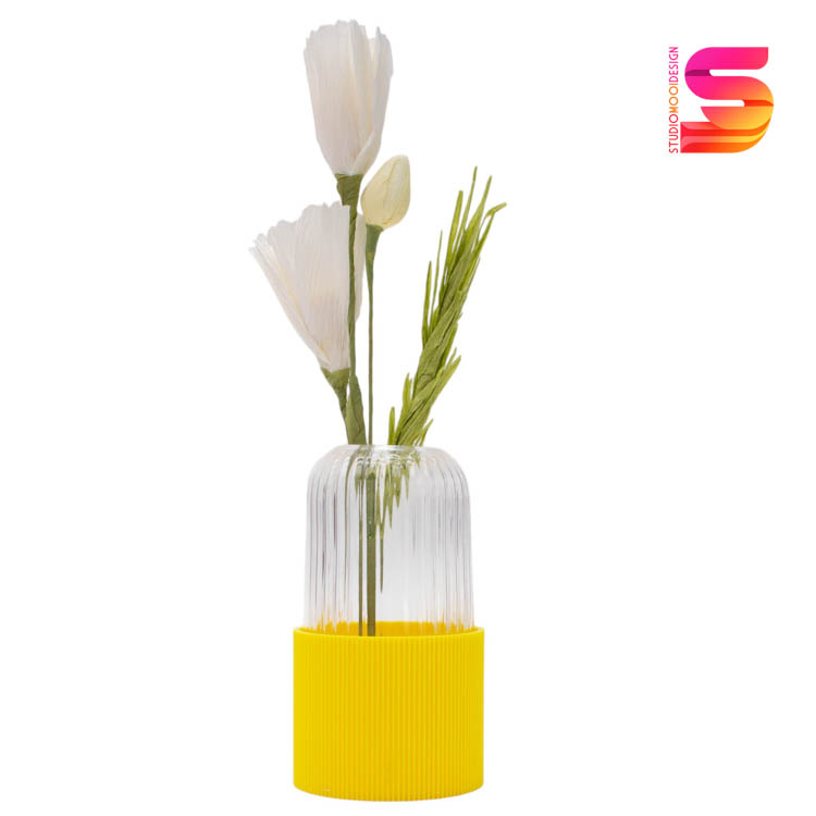 Vaasje met houder Geel ( bloemen HEMA niet in begrepen)